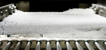The cut material is then fed continuously to the extruder. The machine is designed so that overloading and underloading are avoided.